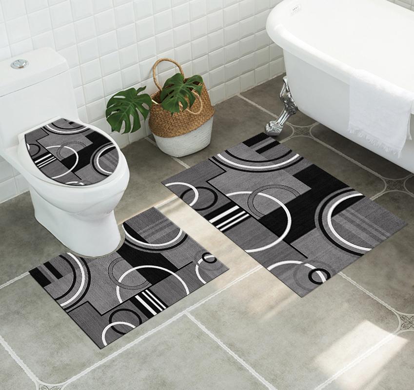 3 Pieces Bathroom Mats Set – Multicolour ( D )
