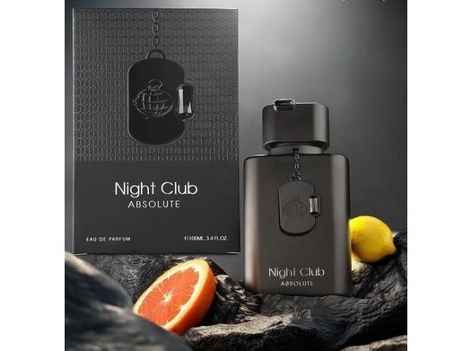 Night Club Absolute by Fragrance World is a Woody Aromatic fragrance for men & women. This is a new fragrance. Night Club Absolute was launched in 2025. Top notes are Black Currant, Bergamot and Grapefruit; middle notes are Geranium and Jasmine; base notes are Patchouli, Amber and Musk